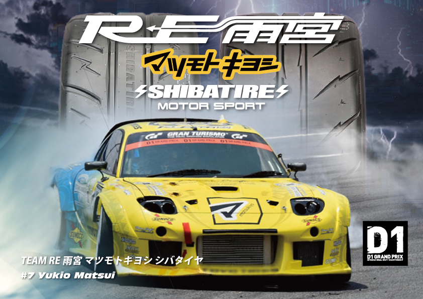 柴田自動車はRE-雨宮が運営するレーシングチーム「TEAM RE雨宮 マツモトキヨシ シバタイヤ 7」のD1GP参戦を支援すべくタイヤの供給を行い、ともにモータースポーツ産業の発展に尽力いたします。