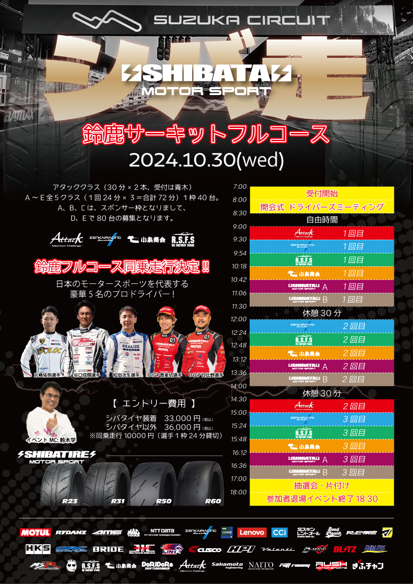 柴田自動車株式会社(以下、SHIBATA)は、2024年10月30日(水)に「鈴鹿サーキット」で「シバ走」を開催します。